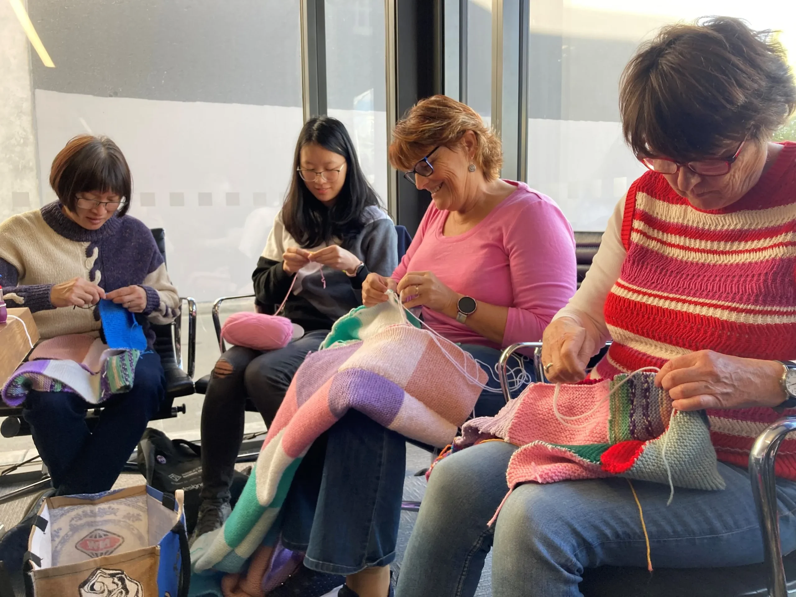 There was a buzz in the air on 8th June, World Wide Knit in Public Day, as our wonderful micro-volunteers got together for Knit for Purpose!